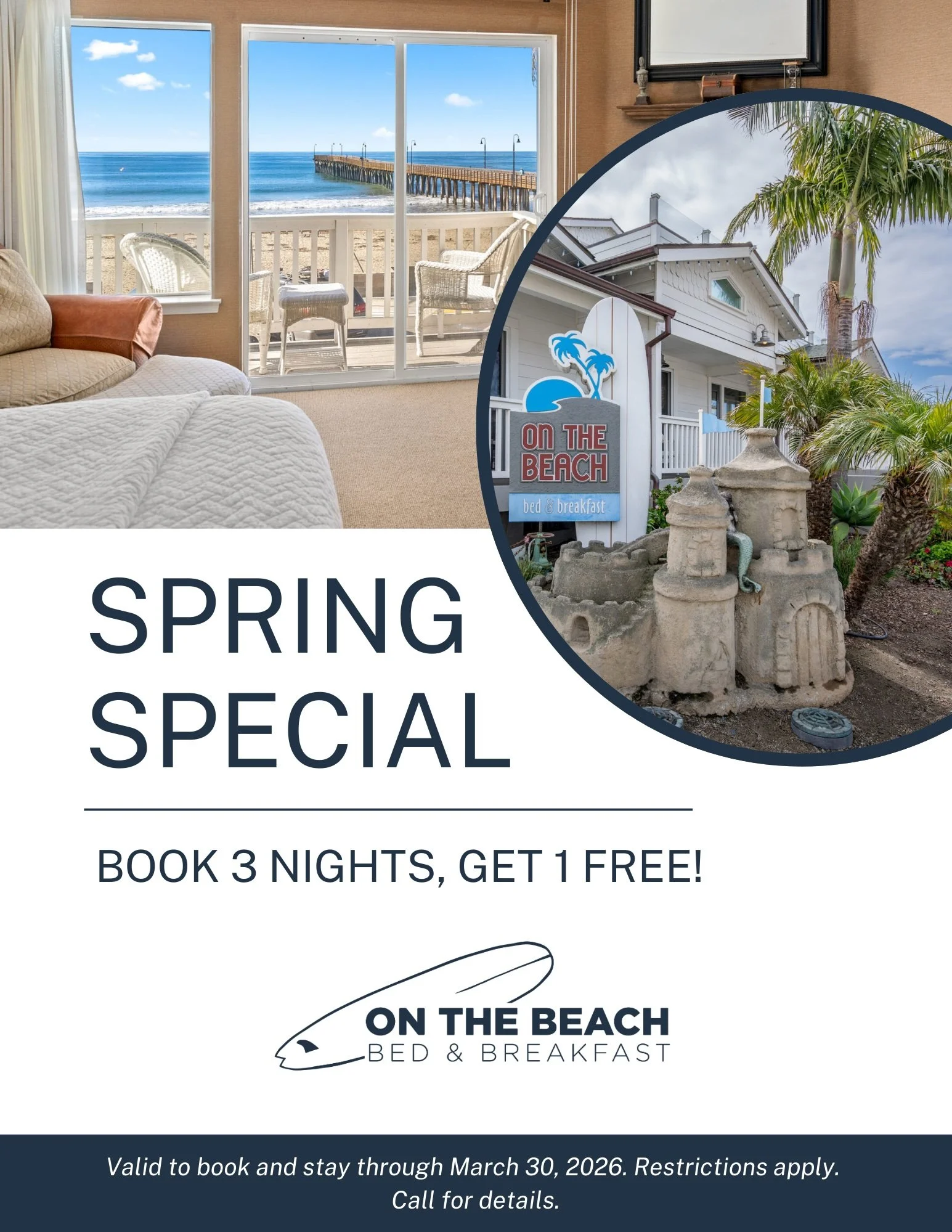 Spring is the perfect time to slow down and soak in the beauty of Cayucos. To make your coastal getaway even sweeter, On The Beach Bed & Breakfast is offering a Spring Special: book three nights, and one of them is free!